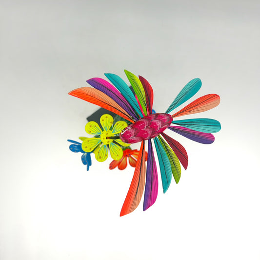 Juan Aguilar ~ Wooden Sculpture Hummingbird with Flowers, 14" x 7" x 7"
