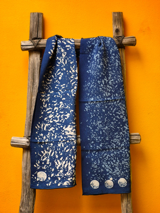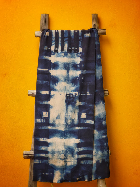 David Mendoza ~ Hand Blocked Indigo Batik Silk Scarf 80" x 14 1/2"