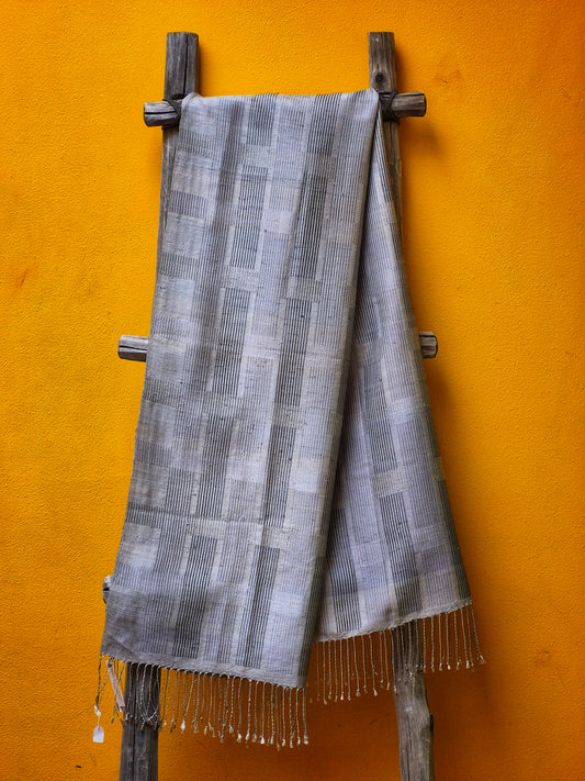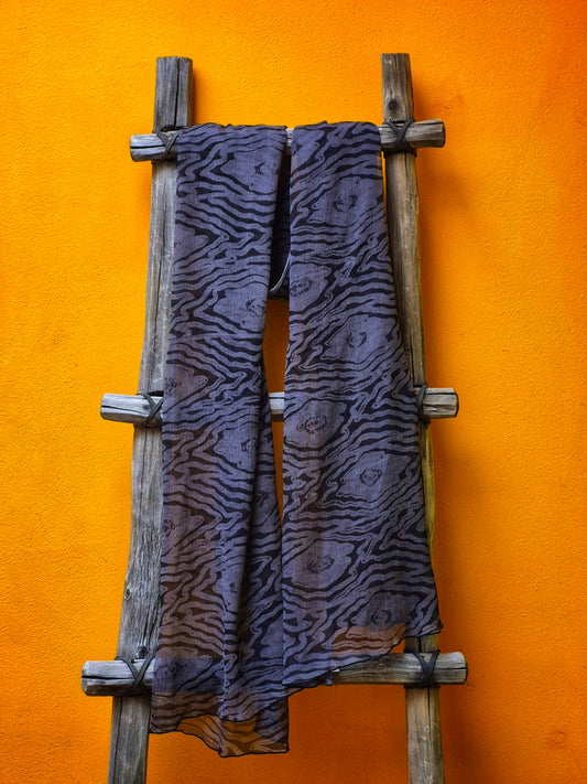 David Mendoza ~ Hand Blocked Indigo Batik Linen Scarf 80" x 14 1/2"