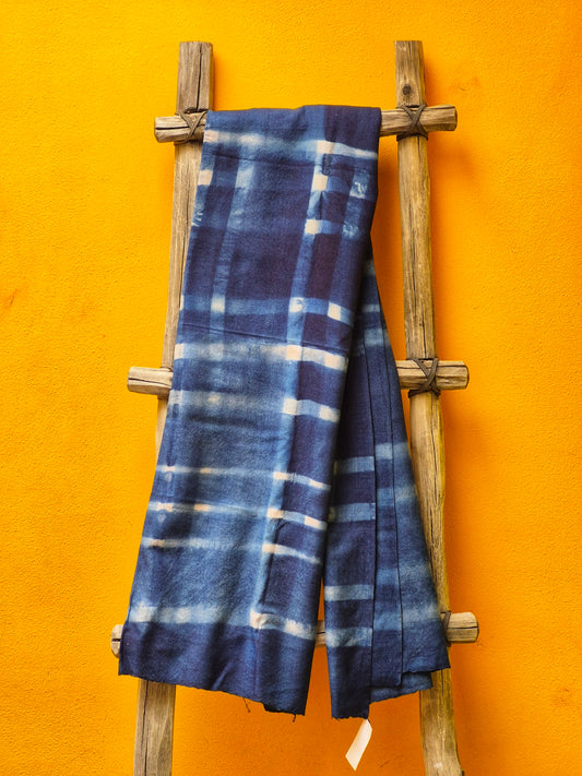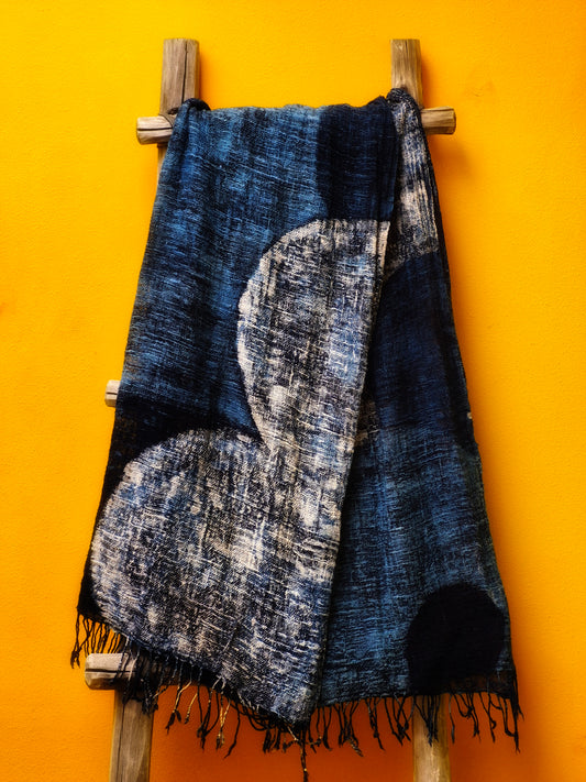 David Mendoza ~ Hand Blocked Indigo Shiori Kashmir Pashmina 77" X 27"