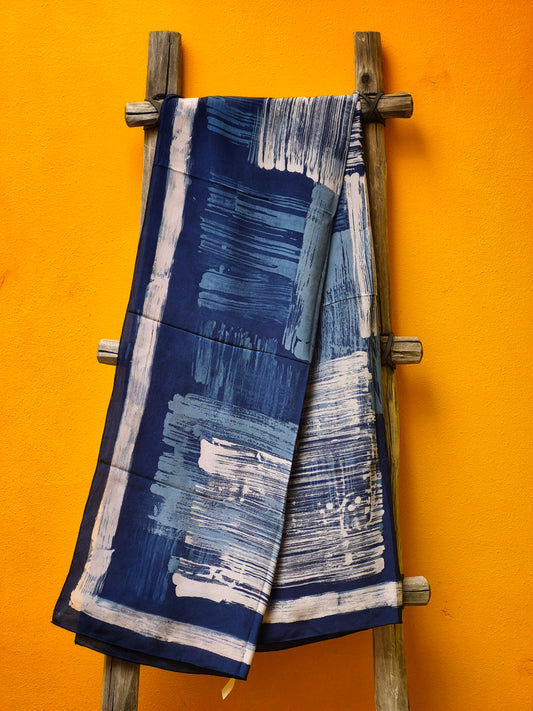 David Mendoza ~ Hand Painted Indigo Batik Silk Selendang 54" x 14"