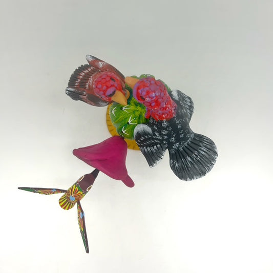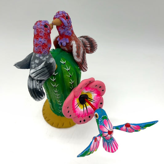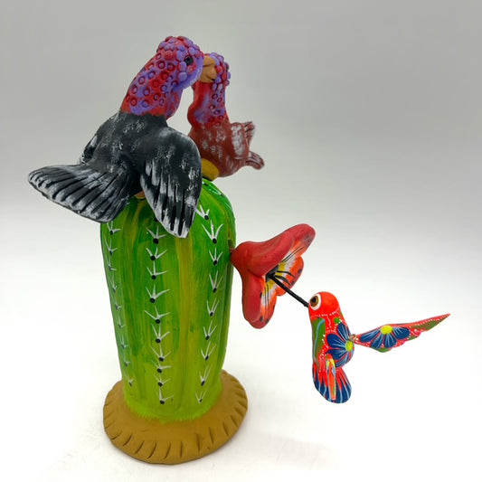 Irene Aguilar ~ Ceramic Cactus with Hummingbird, Turkeys, 9 1/4" x 8 1/2" x 6 1/4"