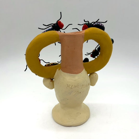 Irene Aguilar ~ Skull Candle Holder with Insects, 9 1/2" x 8" x 4"