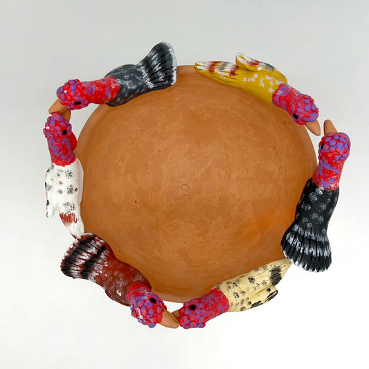 Irene Aguilar ~ Ceramic Rooster Bowl, 8 1/2" x 10" x 9 1/2"