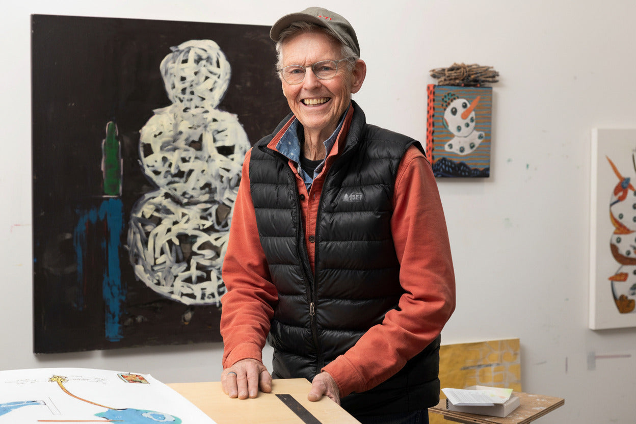 Craig Anderson's - personal art work to be revealed has been created over a lifetime of daily studio art practice. Anderson's carnival of color is brought to paintings, collages, assemblages, and drawings that demonstrates a world of tussling characters that inhabit a constellation of cultural fragments. Anderson has developed a humorous dreamlike world of symbolic abstraction to fight back against the ambient chaos of contemporary culture. Employing paint, cardboard, canvas, paper, rock, and even lengths of rope, his paintings, collages, assemblies, and drawings often include clippings from newspaper comics. Anderson is engaged fully in a mano a mano visual conversation the struggles with life's enigmas.