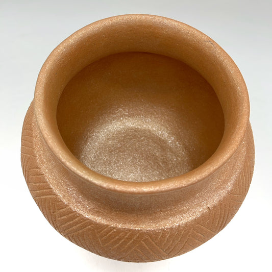 Andrea Byers ~ 5 Quart Mica Tall Bean pot with Incised Design, "10 x 9 x 9"