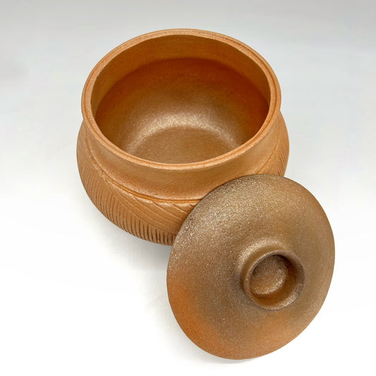 Rhonda Avidon ~ 5 Quart Traditional Mica Bean Pot with lid, Incised 8" x 8 1/2" x 8 1/2"