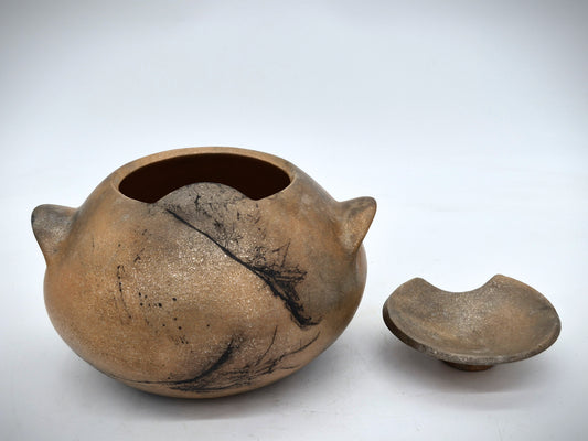 Mary Elaine ~ 2 Quart Casserole style pot, w/lid, handles and horsehair 6" x 4" x 8 "