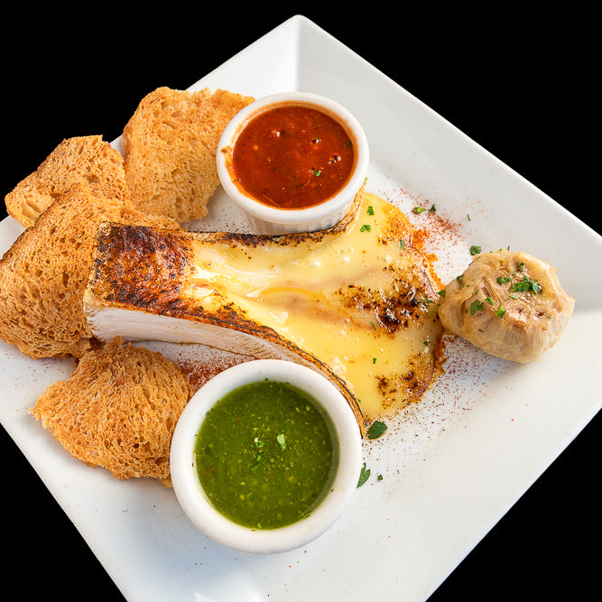 WARM FRENCH BRIE ~ Oven-Roasted Head of Garlic / Salsas of Roasted Tomato-Jalapeño and Tomatillo / Toasted Sourdough 27.