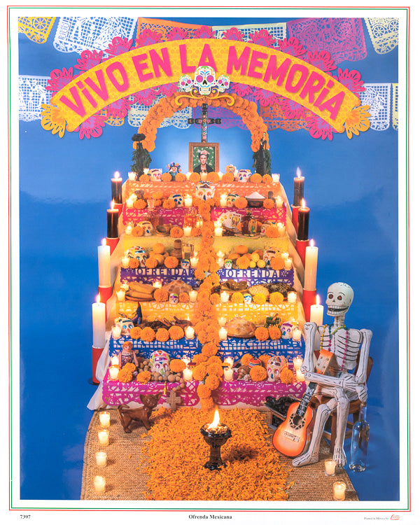 Colorful image Day of the Dead Altar. Printed in Mexico.