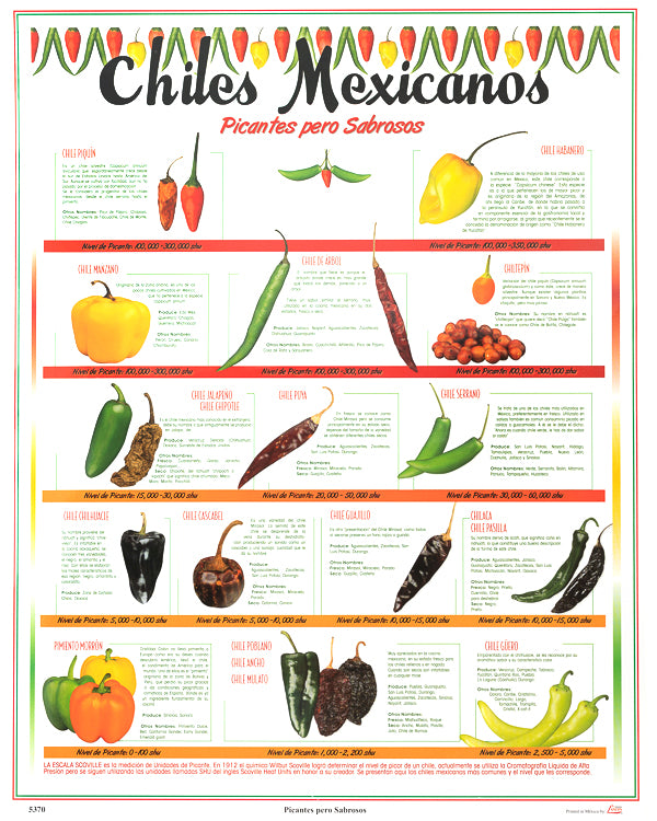 Colorful image with all types of Chile Peppers. Printed in Mexico.