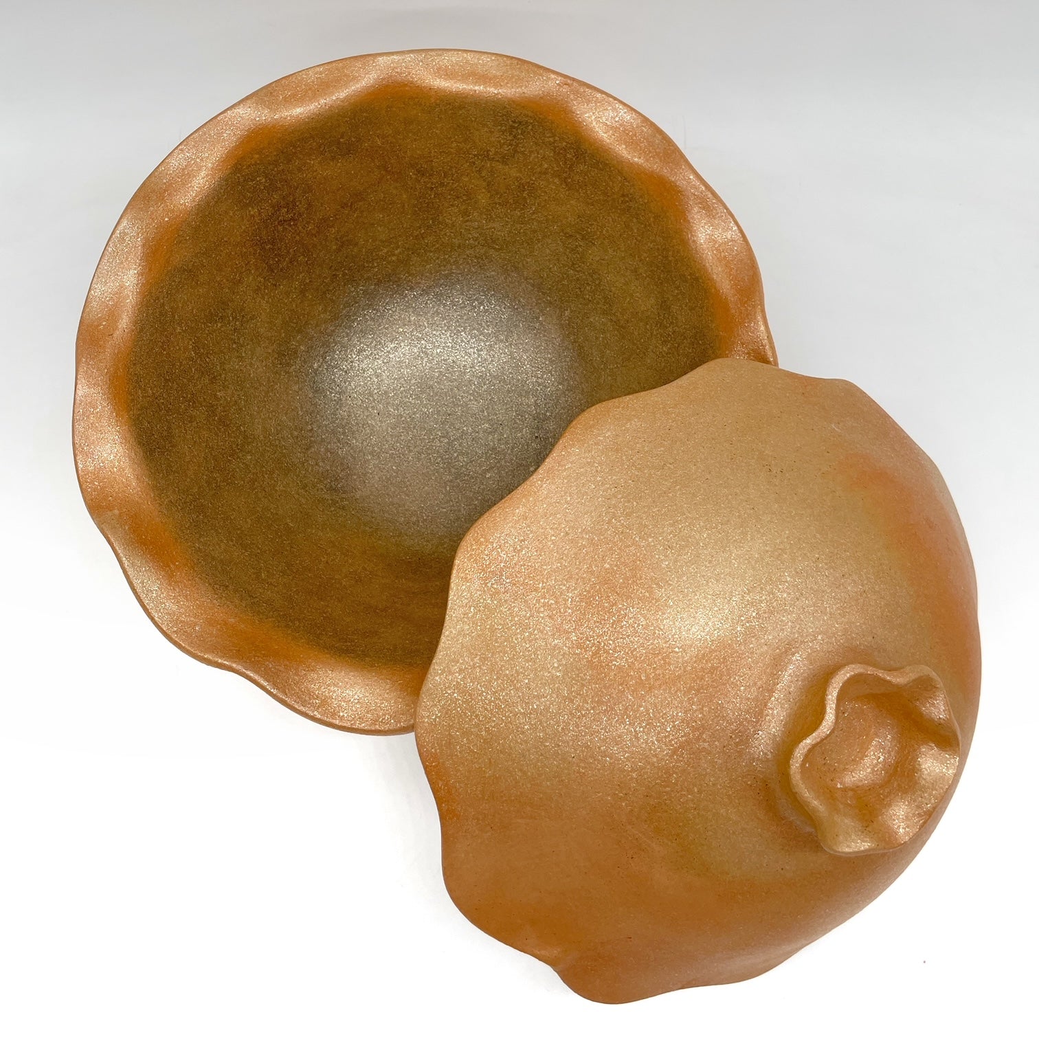 Wide bowl with fluted rim detailing, hand-built from sparkling mica clay dug in Northern New Mexico.