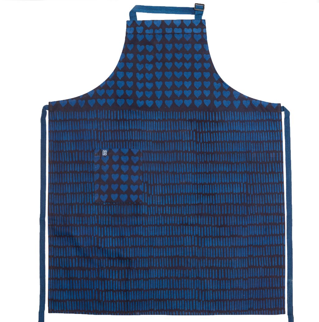 David Mendoza ~ Hand Blocked Indigo Heart / Hash Mark Batik Apron
