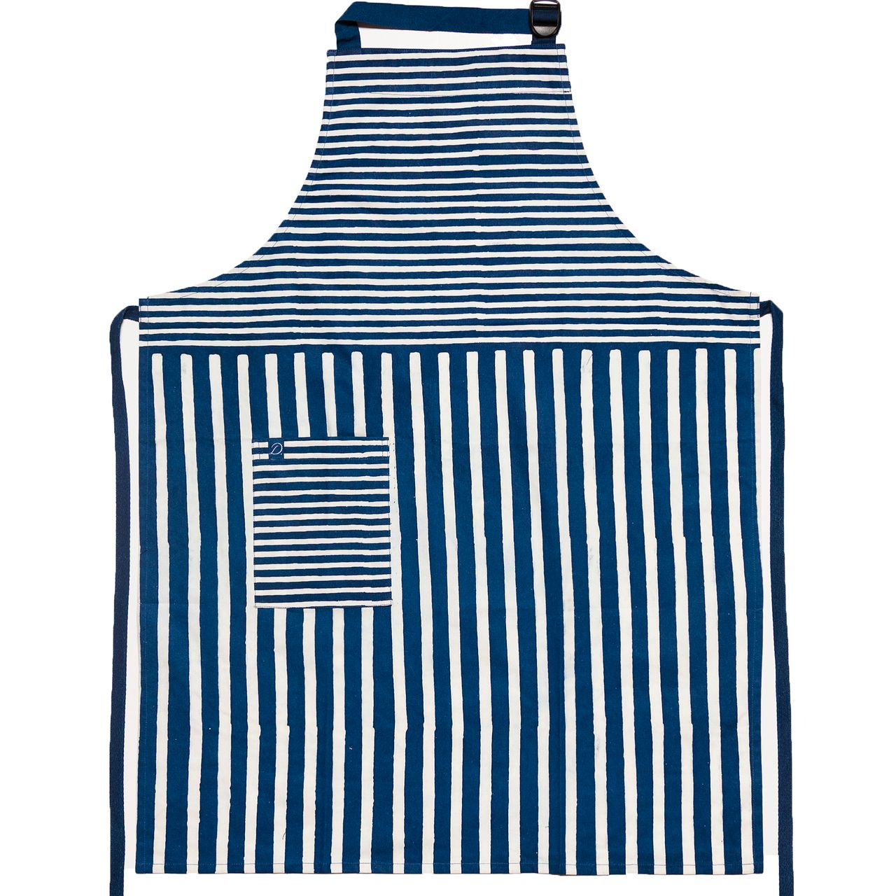 David Mendoza ~ Hand Blocked Indigo Wide Stripe Batik Apron