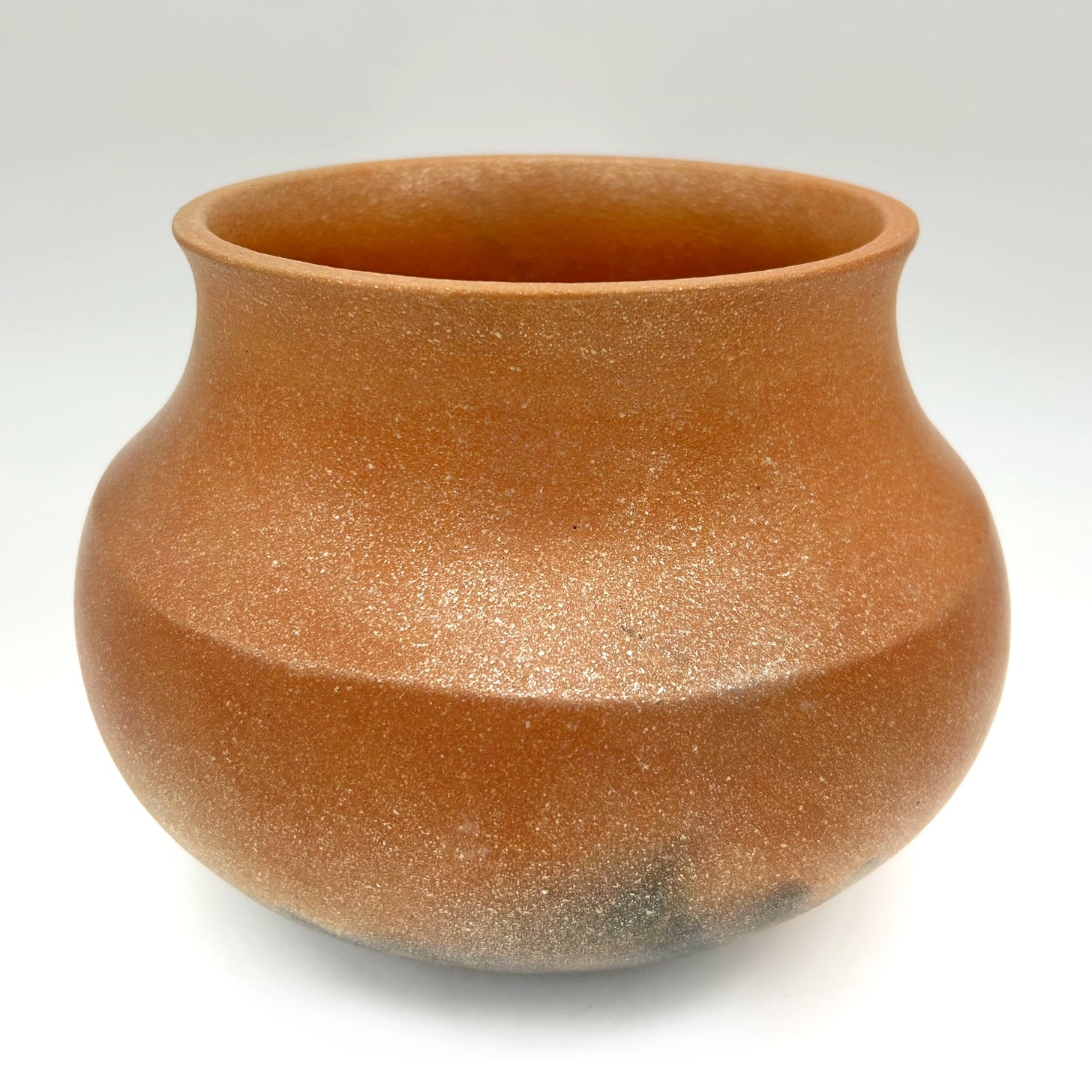 Fully functional, hand built mica clay cookware, featuring naturally sparkling micaceous clay hand-dug in Northern New Mexico. Unglazed, natural clay color with flame clouds from reduction pit firing.