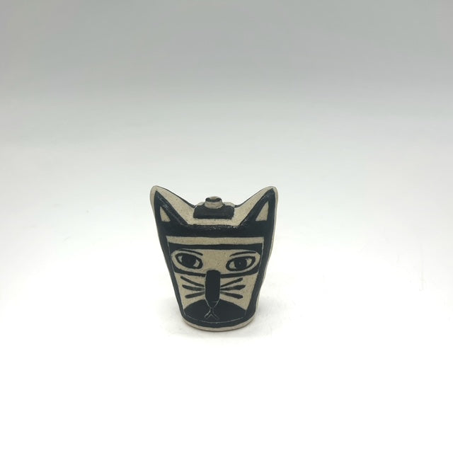 Ceramic Cat Face Jar Sculpture in Black/Cream