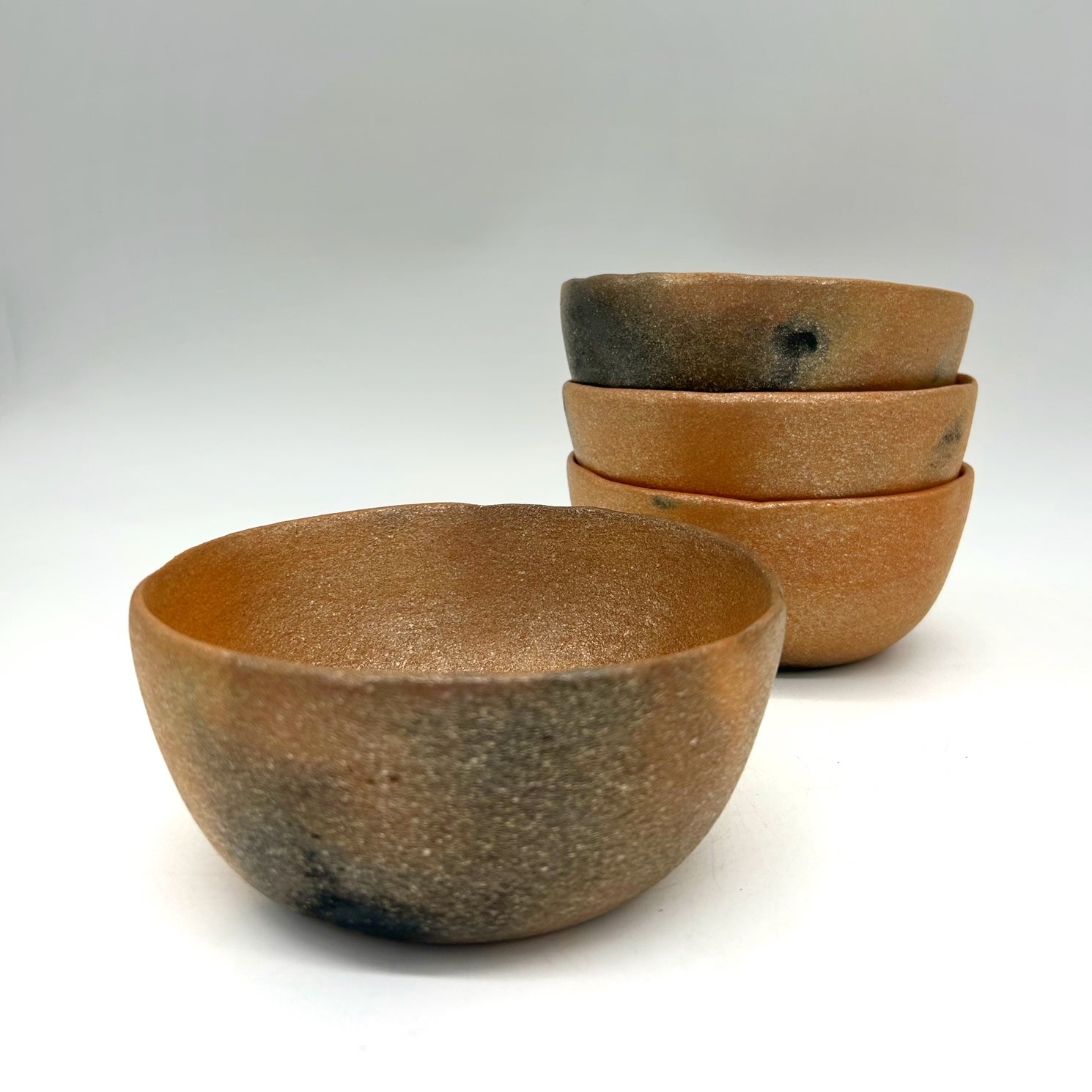 Fully functional, hand built mica clay cookware, featuring naturally sparkling micaceous clay hand-dug in Northern New Mexico. Unglazed, natural clay color chile bowls featuring "flame cloud" markings developed during pit firing.