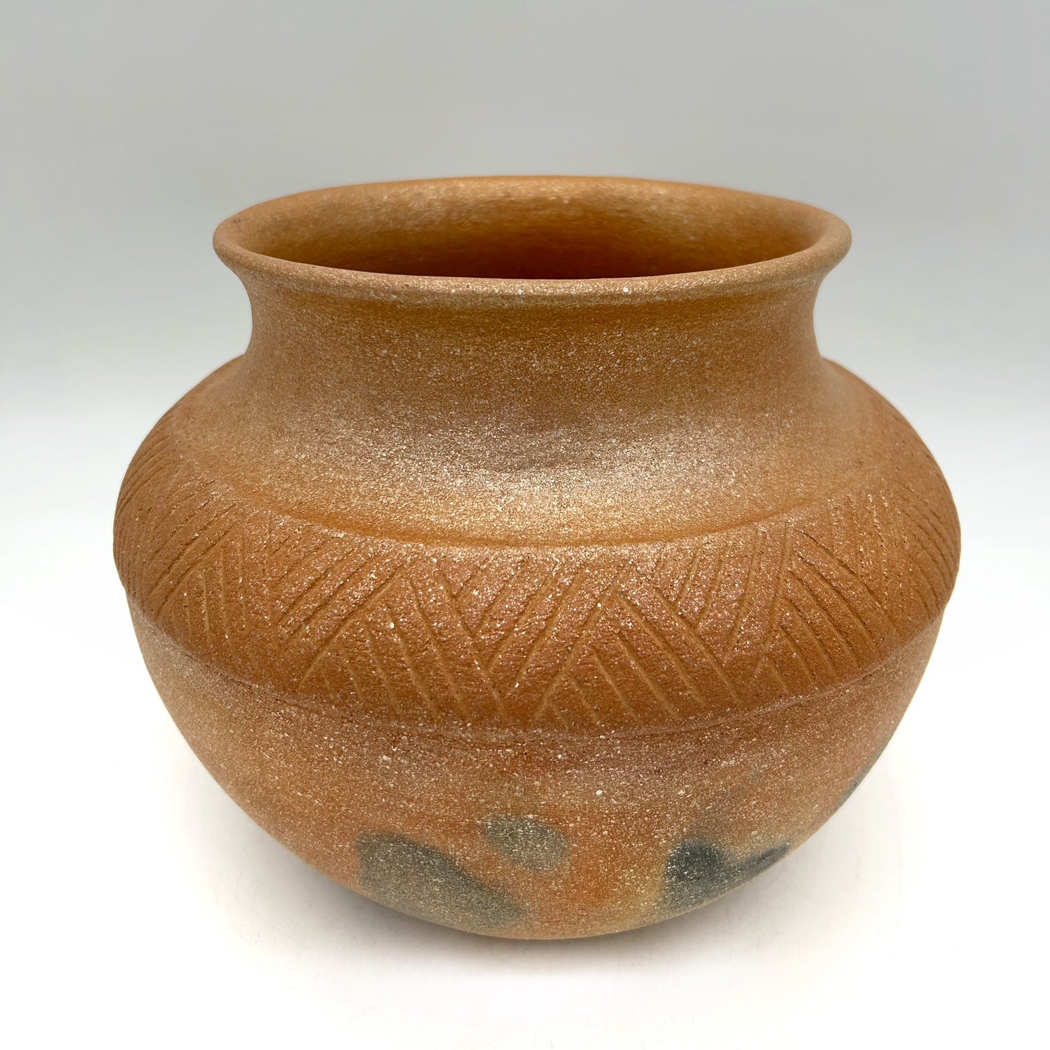 Fully functional, hand built mica clay cookware, sparkling mica, traditional bean pot with Incised Design.