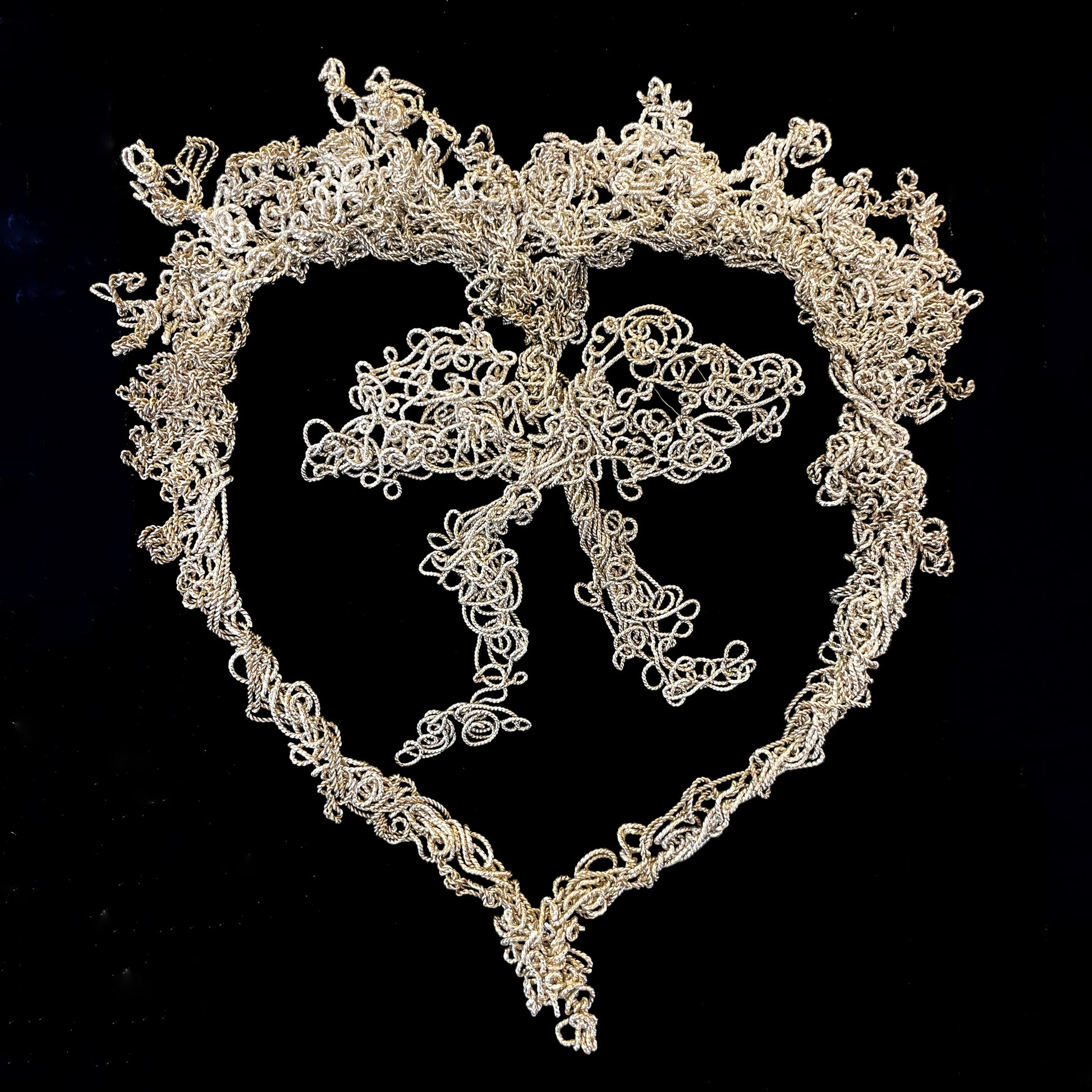 Mary Buck ~ Sterling Silver Heart Bow, Amulet, 7 3/4" x 6"