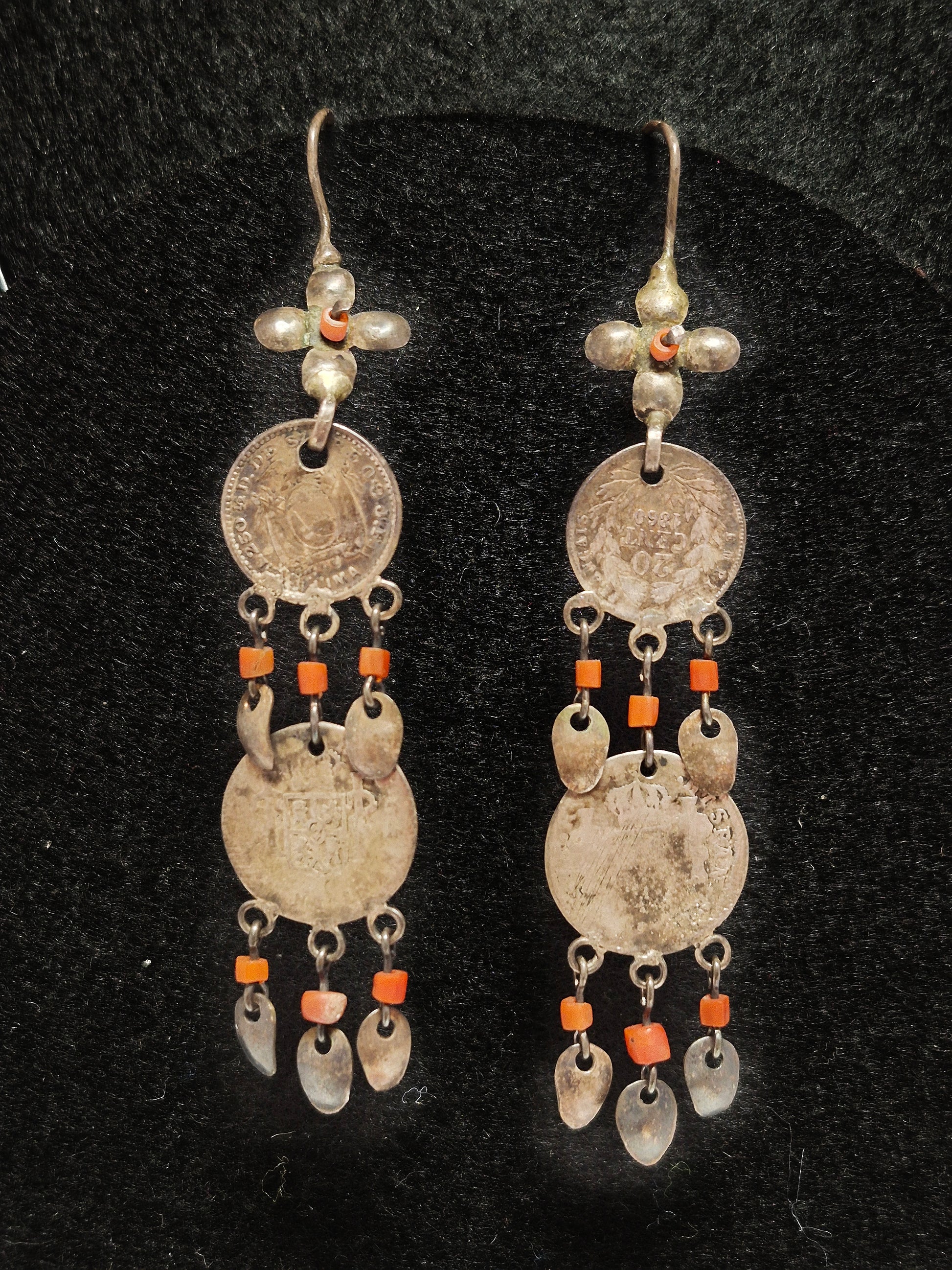 Vintage Pre-1950s pair of silver earrings with orange beads.
